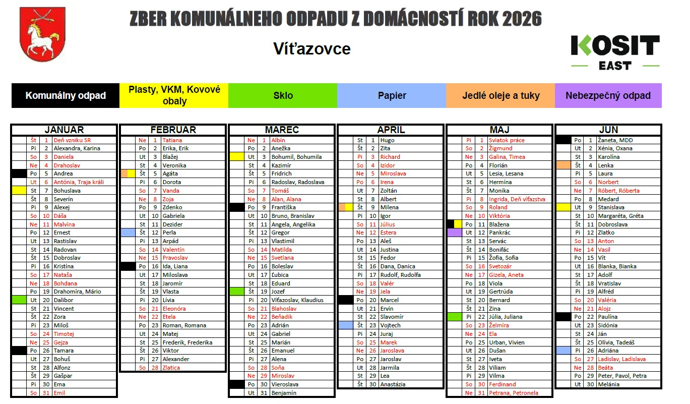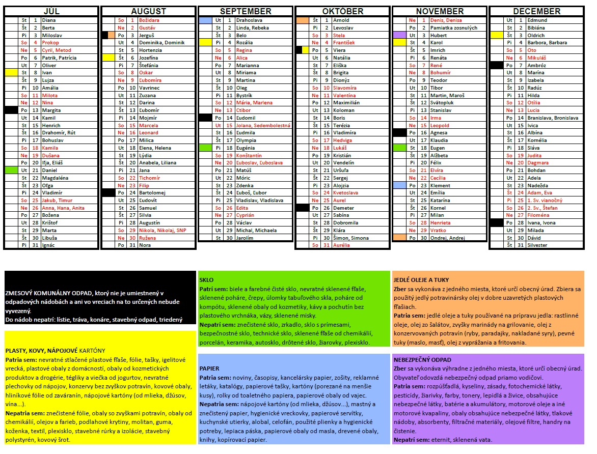 Harmonogram zberu odpadu v obciach - KOSIT EAST
