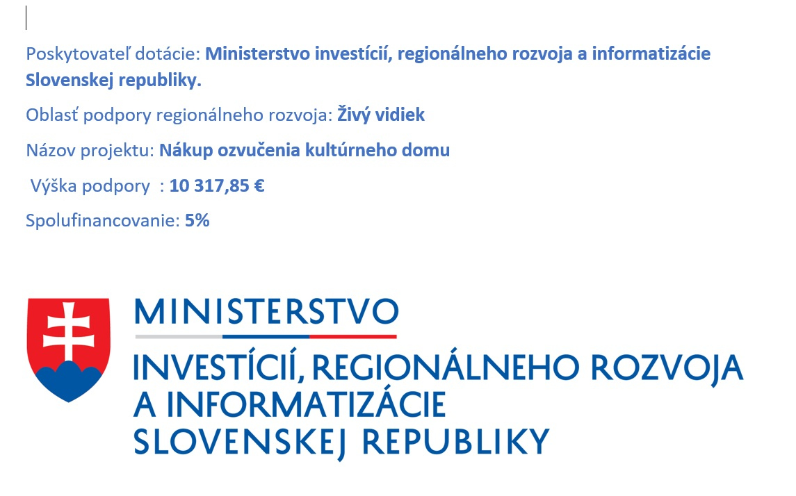 Tento projekt podporilo Ministerstvo investícií, regionálneho rozvoja a informatizácie Slovenskej republiky sumou 10.317,85€